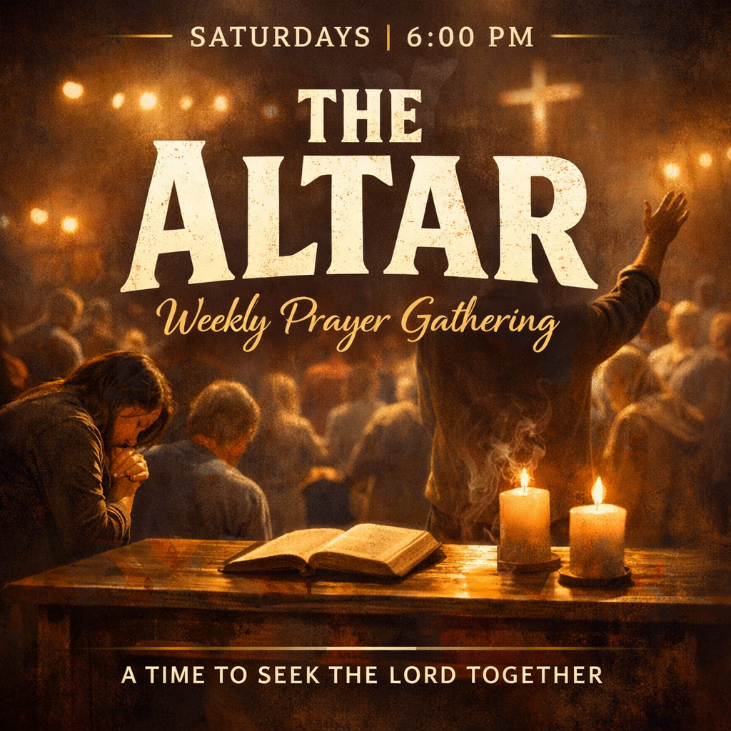 Join us on Saturday evenings at 6:00pm for The Altar, a weekly time set apart for prayer and seeking the Lord together.